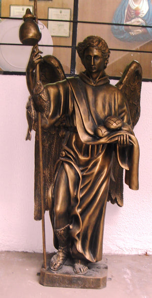 Archangel St. Raphael 49"statue brings divine presence to any sacred space. Perfect for churches, prayer gardens, or home devotional areas. The statue is 49" from the base to the top of his head.