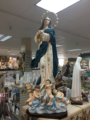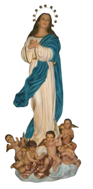 The Assumption 61" statue is a beautifully crafted representation of religious art, showcasing the skill and devotion of our master artisans. Meticulously made from high-quality materials and refined with expert techniques, this statue reflects the unparalleled standards of Fiat Religious Statues.