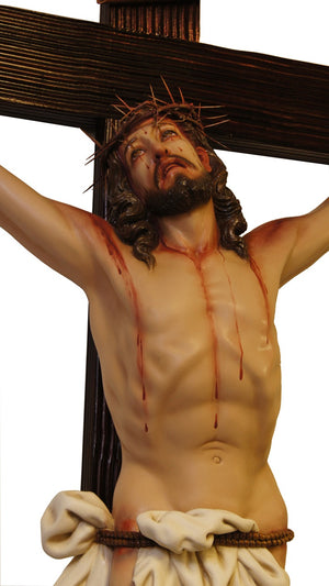 The Crucifix 84" statue is a beautifully crafted representation of religious art, showcasing the skill and devotion of our master artisans. Meticulously made from high-quality materials and refined with expert techniques, this statue reflects the unparalleled standards of Fiat Religious Statues. Elevate your sacred space with this meaningful work of art, and invite both aesthetic beauty and spiritual grace into your home or place of worship.