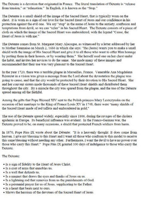The Detente (Sacred Heart Medallion-Shield) is a devotion that originated in France.It is a small shield of the image of the Sacred Heart. Never stop using this simple STOP, always carry it with you, in your wallet, in your purse, in your workplace, in your home...... Sacred Heart of Jesus I Trust in You!!! +++