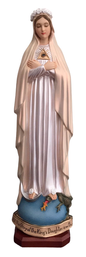 Beautiful 16-inch Lady of the Indwelling Trinity statue with pearlized paint finish. Perfect for home altars and prayer spaces, bringing divine presence and spiritual devotion to your sacred space. +++