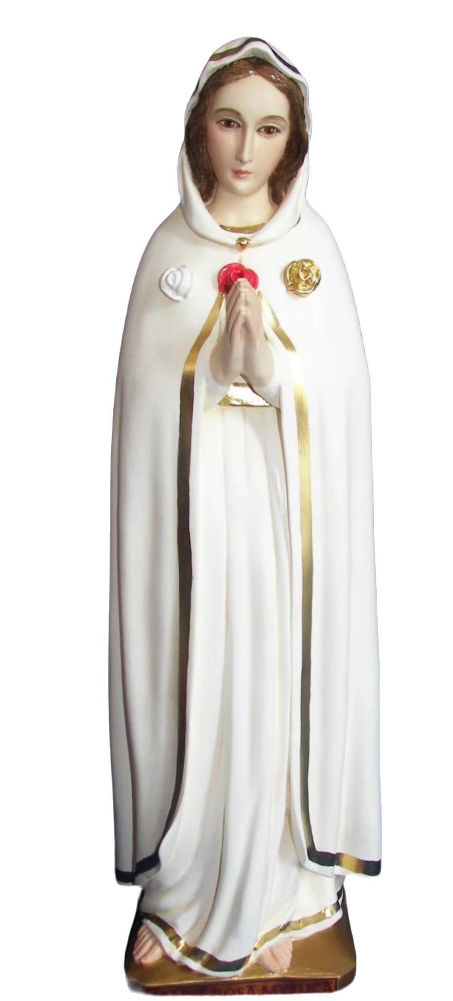 The Rosa Mystica 19" statue is a beautifully crafted representation of religious art, showcasing the skill and devotion of our master artisans. Our Lady Rosa Mystica is a title associated with the Virgin Mary, honored for her message of peace, spiritual renewal, and devotion. She is often depicted with three roses—white for prayer, red for sacrifice, and gold for penance—each symbolizing a call to deeper spiritual commitment.+++