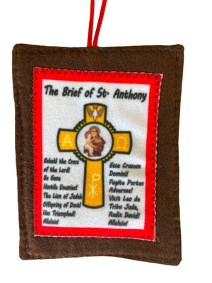 The St. Anthony Brief is a traditional Catholic devotional item, typically a small piece of blessed cloth or paper containing prayers and images of St. Anthony of Padua. This sacred brief is worn or carried as protection against temptation, particularly against sins of impurity, and to invoke St. Anthony's powerful intercession.