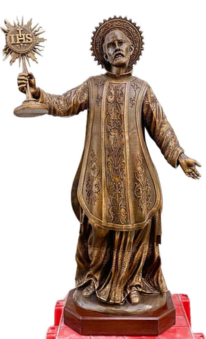 The statue measures 42 inches in height, or 43 inches including the halo.
