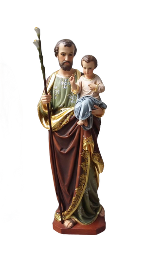 This magnificent 47-inch St. Joseph statue with baby Jesus features an elegant fancy finish that brings sacred beauty to any space. Crafted with attention to detail, this impressive religious statue serves as a powerful symbol of protection, fatherhood, and devotion.